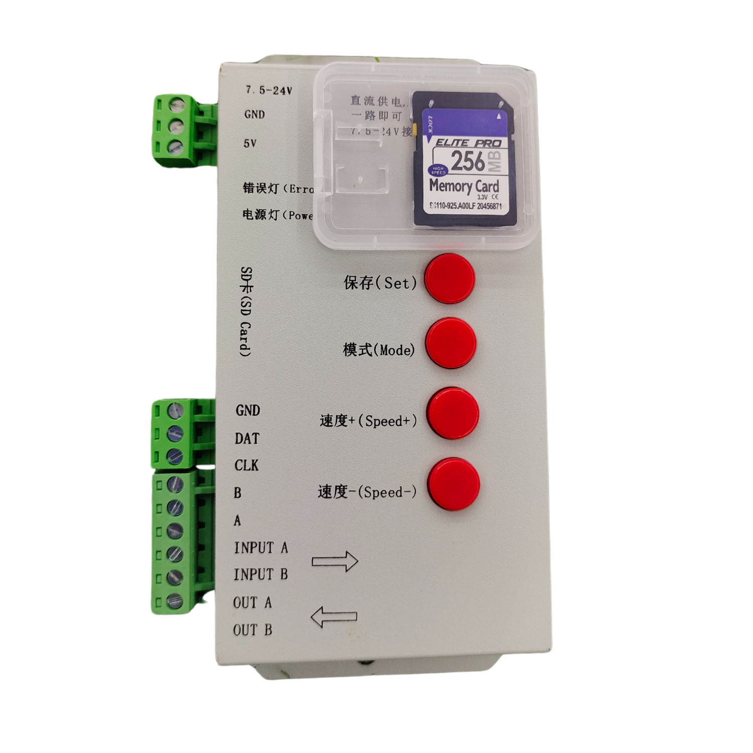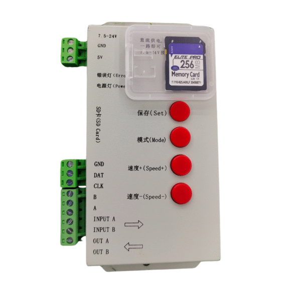 The T-1000S LED Controller is a reliable and widely used offline controller for addressable RGB LED pixel lights. With SD card support, it can run pre-programmed lighting effects without the need for a computer, making it perfect for LED signboards, display panels, festive lighting, and custom lighting projects.